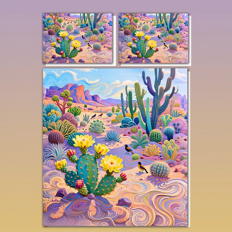 Upgrade your sleep space with the enchanting charm of the desert—order the Desert Bloom Digital Print Bedding Set today and bring a touch of nature’s magic into your home!