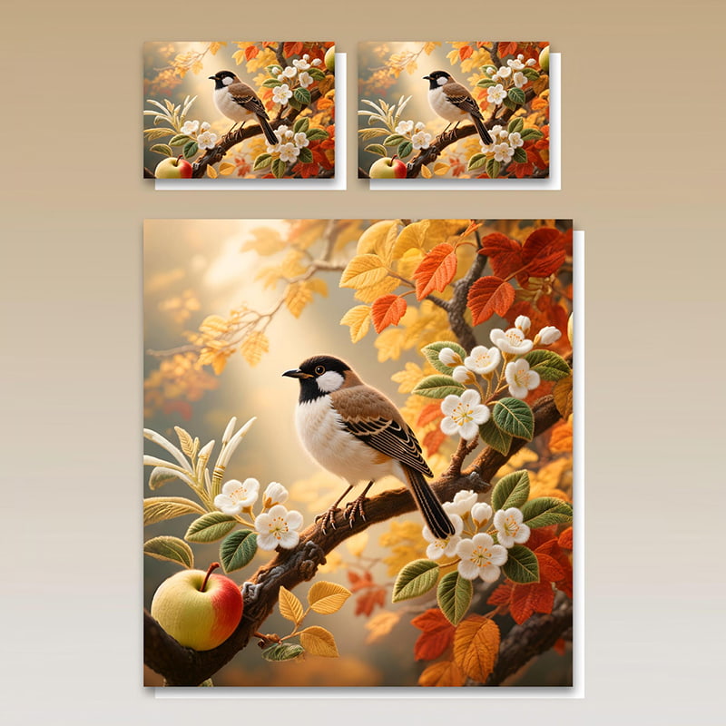 The advanced 5D printing technology creates a true-to-life depth and texture effect — the sparrow, leaves, and flowers appear as if they’re gently swaying in the autumn breeze. Every color transition is enhanced for a realistic three-dimensional visual experience that transforms your bedroom into a serene autumn garden.