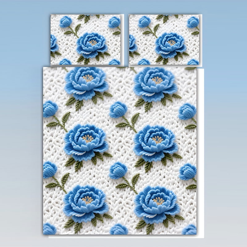 Transform your bedroom with Blue Peony Dream, a stunning bedding set featuring high-resolution 5D digital printing. The exquisite blue peony flowers bloom vividly across a soft white woven-texture background, creating a breathtaking 3D illusion of hand-embroidered artistry. Each petal radiates lifelike beauty, giving your space a refreshing and elegant touch.