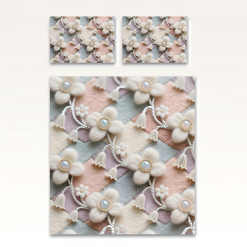Experience the charm of elegant floral artistry with the Ivory Pearl Bloom bedding set. Using advanced 5D digital printing technology, the ivory-white blossoms appear as if they’re delicately hand-crafted, adorned with pearl centers and fine silver vine details. The lifelike 3D depth creates a stunning visual texture that brings your bedroom to life.