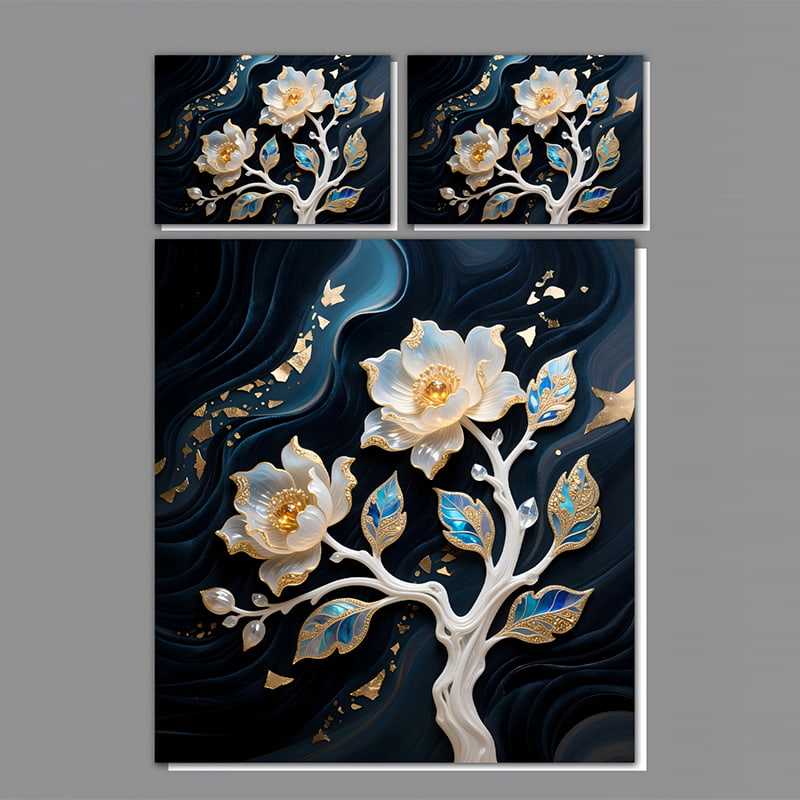 Our bedding set is crafted with 5D digital printing technology, bringing the intricate beauty of the “Luxurious Floral Tree” theme to life. Every detail—delicate white blossoms, glistening gold accents, and vibrant blue leaves—is rendered with precision, ensuring vibrant colors and sharp patterns that stay vivid wash after wash.