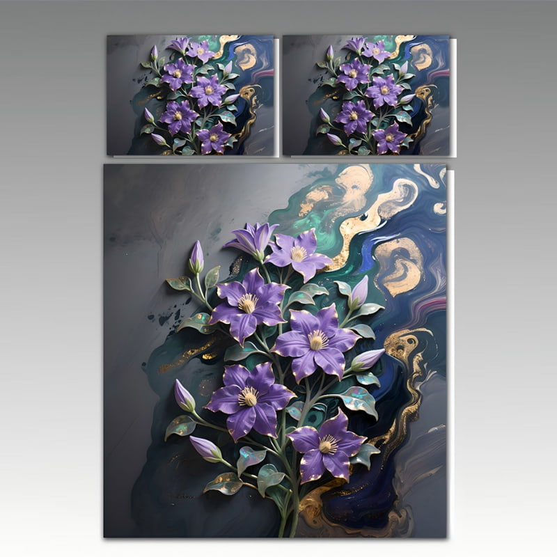 This bedding set is perfect for those who love bold floral decor and want to infuse their bedroom with a sense of luxury. The deep purple clematis flowers, gold accents, and swirling abstract patterns create a sophisticated atmosphere, making it ideal for bedrooms, guest rooms, or even nurseries. The 5D floral design adds a touch of elegance, elevating your space from ordinary to extraordinary.