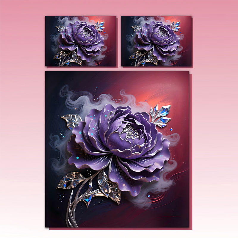 Our bedding set is crafted with 5D digital printing technology, bringing the intricate beauty of the “Luxurious Purple Peony” theme to life. Every detail—vivid purple peony blossoms, elegant silver leaves, sparkling diamond-like accents, and swirling patterns—is rendered with precision, ensuring vibrant colors and sharp patterns that stay vivid wash after wash.