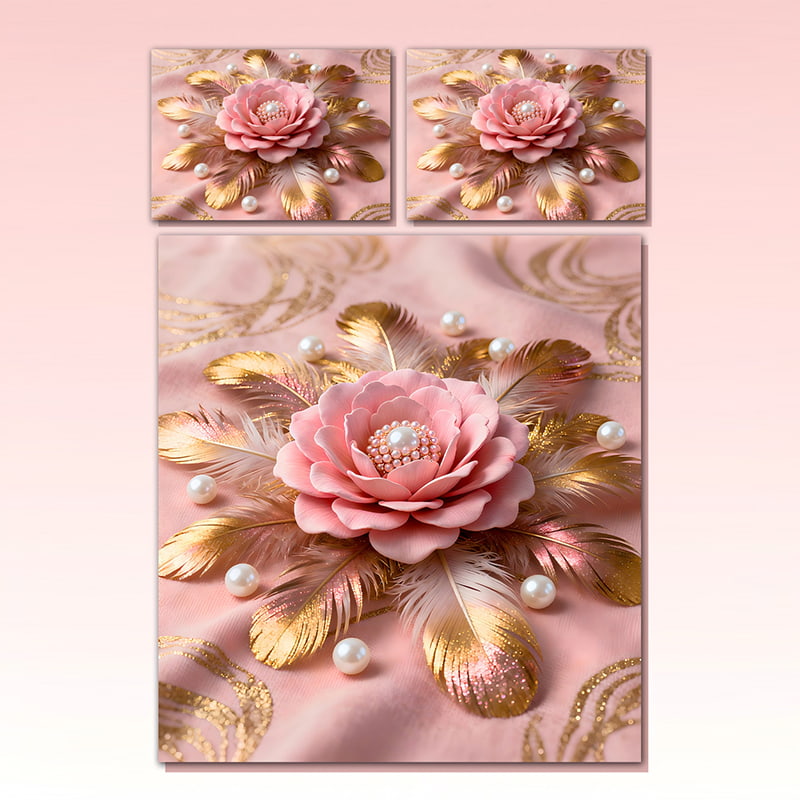 Stunning 5D Digital Print: Featuring breathtaking pink blooms adorned with lustrous golden feathers and delicate pearls, our unique design brings a majestic sense of depth and realism to your decor.