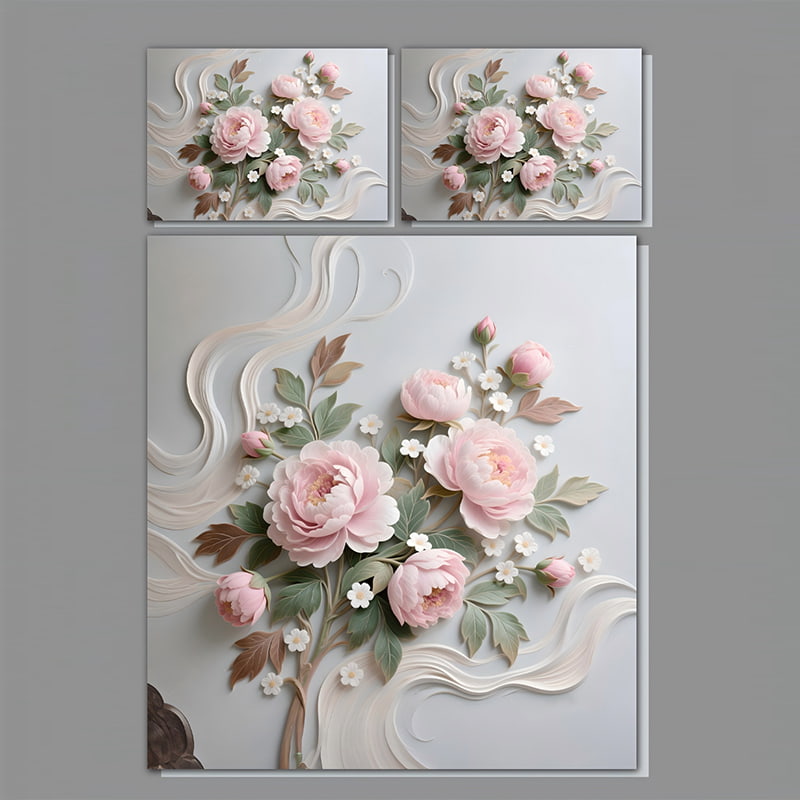 This 5D Digital Print Bedding Set showcases a beautifully detailed design of soft pink peonies surrounded by delicate white flowers and flowing waves. The advanced 5D printing technology creates an incredible three-dimensional effect, making each petal and leaf appear lifelike. The soft, pastel color palette adds a serene and sophisticated touch to your bedroom.