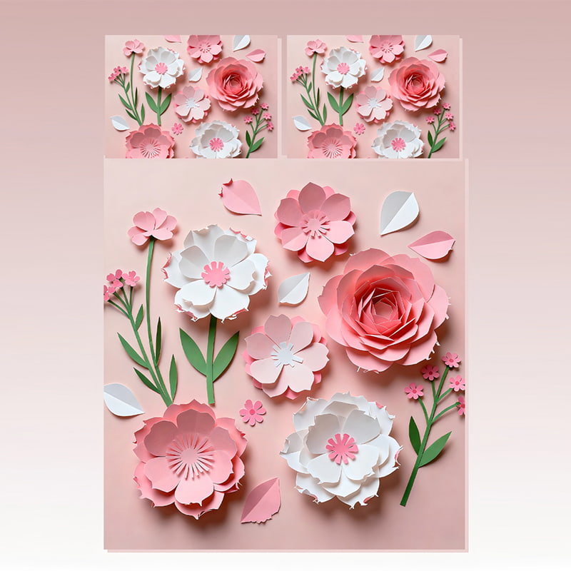 This original artistic composition blends delicate petals and blooming roses in soft pastel tones, symbolizing grace and freshness. The intricate floral patterns give the impression of hand-crafted paper art, creating a luxurious and serene atmosphere that transforms your bedroom into a blooming spring garden.