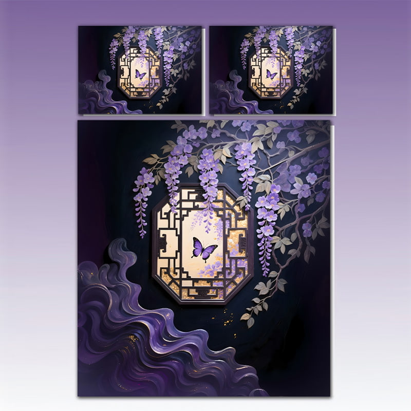 Crafted with 5D Digital Printing Technology, this bedding set captures every intricate detail of the enchanting wisteria scene. The design features vibrant purple wisteria flowers cascading from traditional Chinese lattices, graceful butterflies in soft purple hues, and swirling abstract gold patterns that add a touch of luxury. Each element—wisteria petals, butterfly wings, and gold accents—is printed with pixel-level accuracy, ensuring vibrant colors and intricate details remain flawless even after repeated washes. This technology eliminates the need for pre-made screens or plates, enabling us to deliver customized designs that perfectly match your personal style.