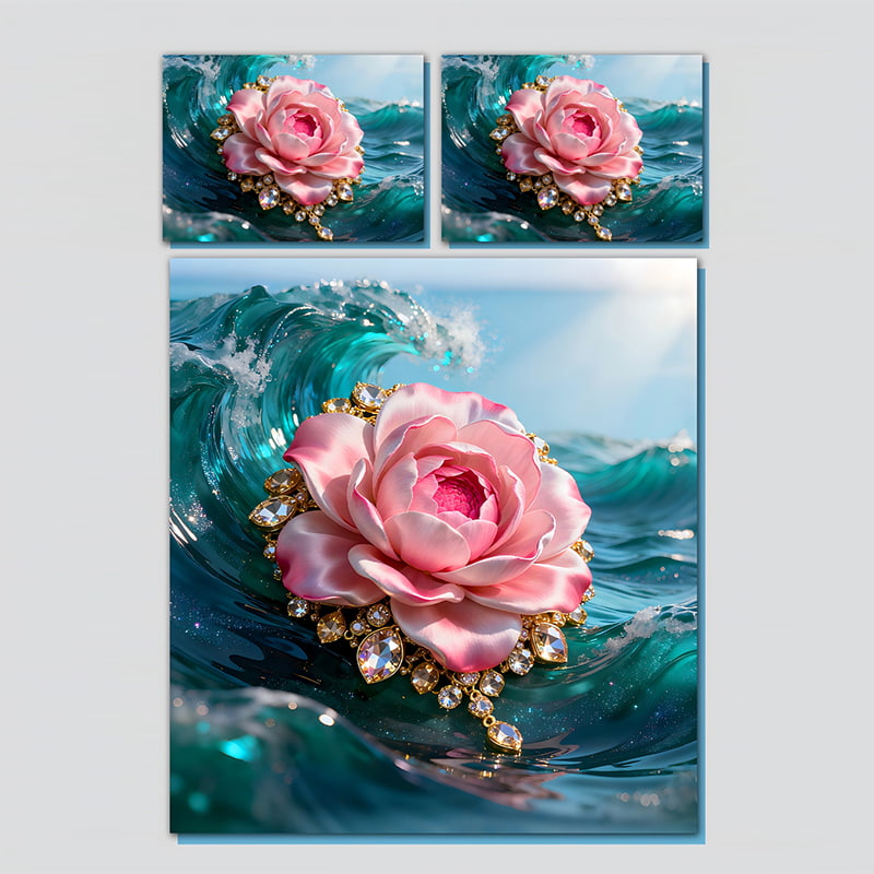 Vibrant 5D Digital Print: Experience artwork that comes to life with a stunning three-dimensional effect, making every detail of the rose and ocean motif remarkably vivid and captivating.