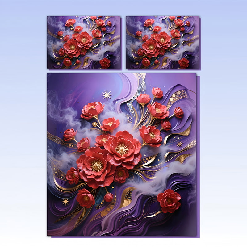 The 5D printing process creates a stereoscopic, 3D-like texture on the fabric. When light hits the bedding, the red blossoms, gold accents, swirling patterns, and star-like elements appear to pop off the surface, adding depth and dimension to your bedroom. This effect not only enhances visual appeal but also makes the bedding feel more luxurious and unique.