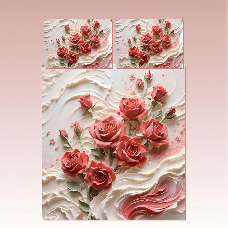 Our exclusive 5D digital print technology breathes life into the design, making the roses and cream waves visually pop with unmatched depth and texture. Every petal, every leaf, and every swirl is rendered with stunning precision, as if you could reach out and touch the vibrant red roses and delicate green leaves.