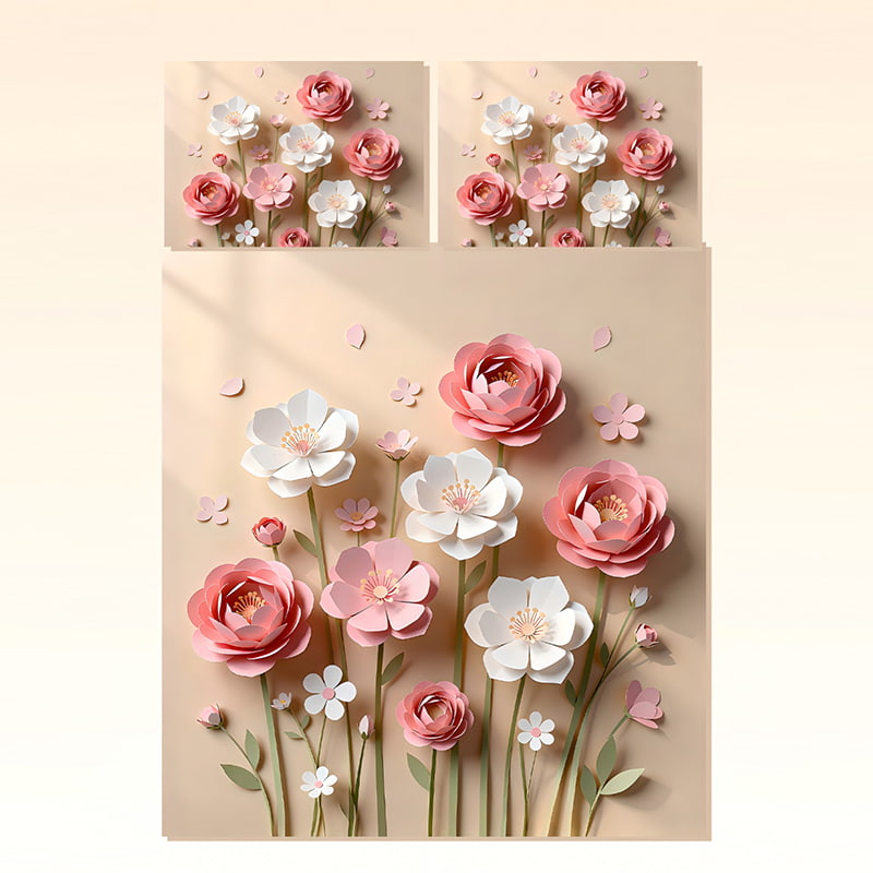 Transform your bedroom into a blooming garden with the “Spring Blossom Garden” bedding set. Featuring advanced 5D digital printing technology, this design captures the delicate beauty of pink and white blossoms standing tall on green stems, creating a realistic 3D floral scene that feels alive and vibrant.