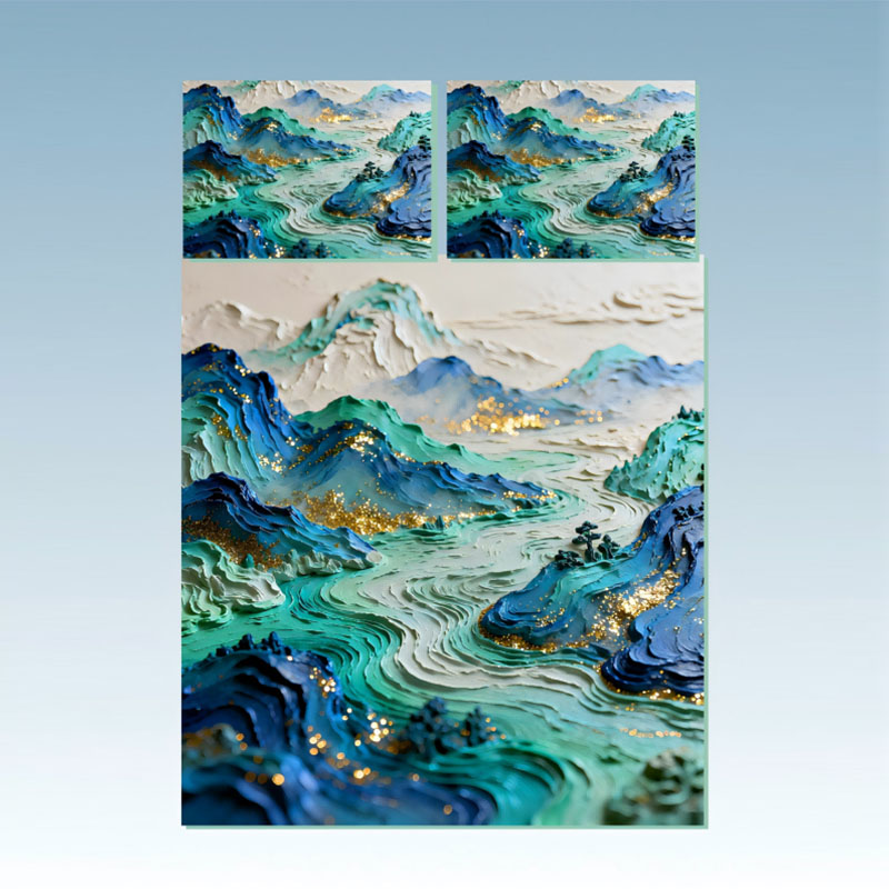 Let the beauty of the mountains and sea, enhanced by golden sparkles, bring tranquility and elegance to your sleeping space. Transform your bedroom into a personal gallery with this exquisite bedding set!